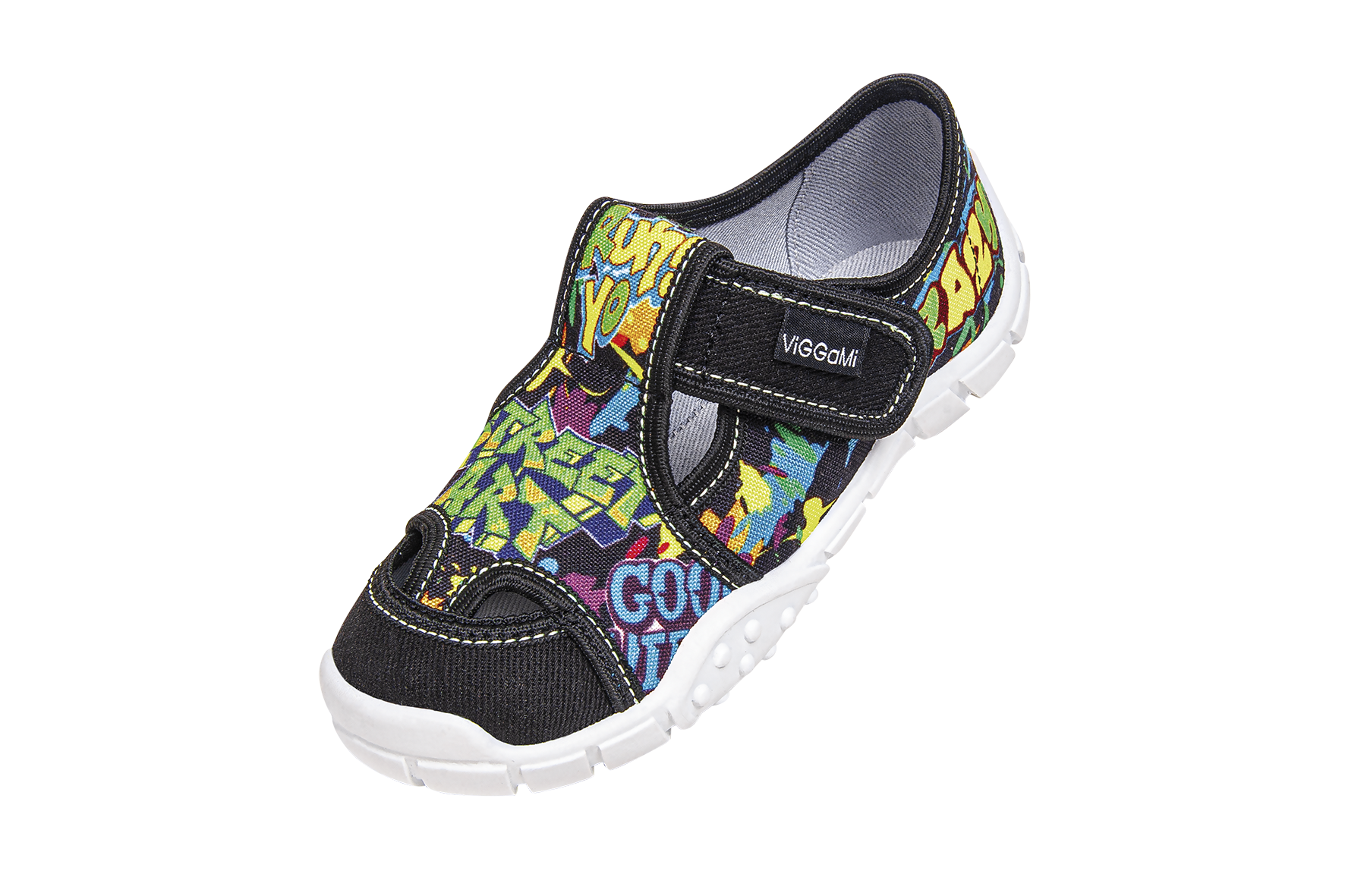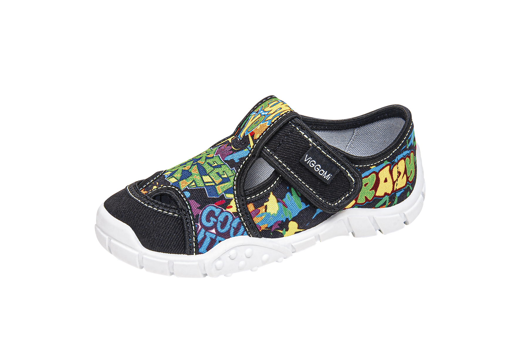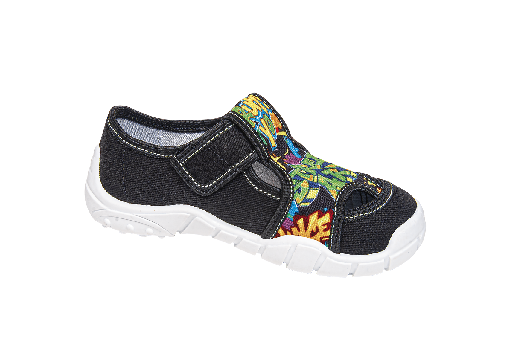 Miękkie i wygodne kapcie chłopięce na rzep, idealne do domu i przedszkola. Wykonane z przyjemnego materiału, zapewniają komfort nawet przy dłuższym noszeniu. Zapinane na praktyczny pasek z rzepem, który ułatwia szybkie i samodzielne zakładanie oraz idealne dopasowanie do stopy dziecka.