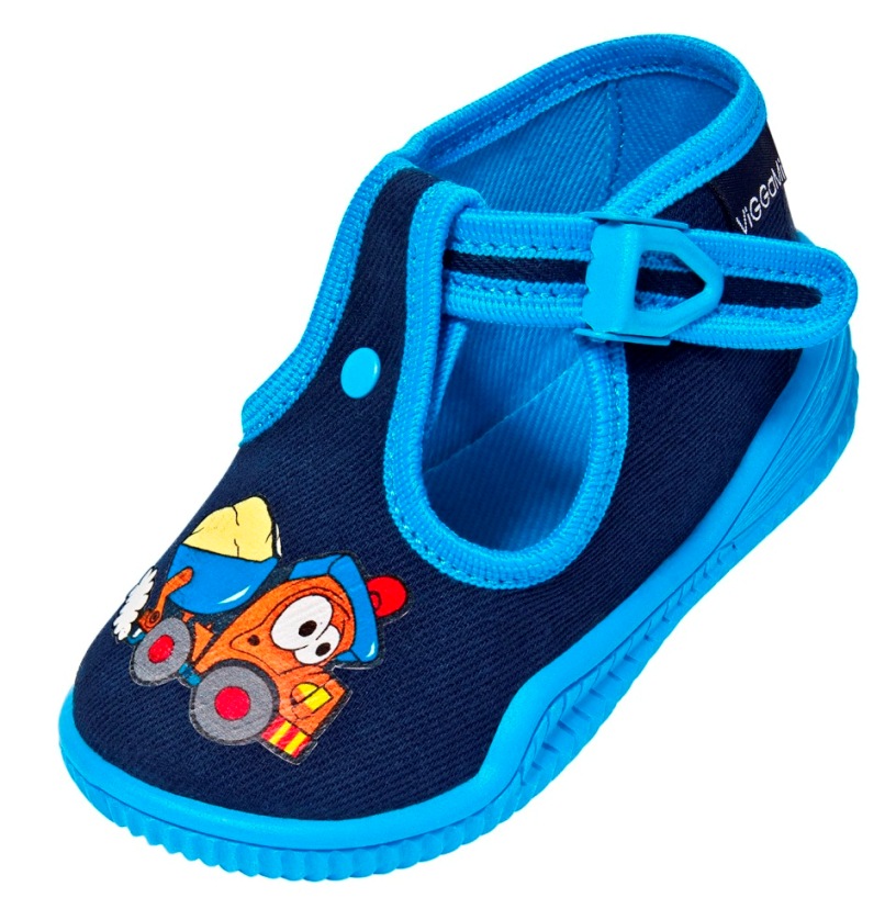 Obuwie tekstylne dla dzieci – praktyczne, idealne na spacery, do przedszkola i do chodzenia w domu. Wykonane z naturalnej bawełny. Pięta usztywniona termoplastycznym zapiętkiem zapewnia stabilność i bezpieczeństwo podczas chodzenia. Spody obuwnicze są produkowane z lekkiego, odpornego na uszkodzenia i ścieranie tworzywa PVC. Spody są antypoślizgowe. Zapięcia umożliwiają regulację i łatwość wkładania stopy.