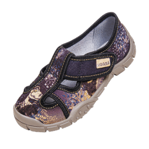 Sandałki dla chłopca – praktyczne, idealne na spacery, do szkoły i do chodzenia w domu. Wykonane z naturalnej bawełny. Pięta usztywniona termoplastycznym zapiętkiem zapewnia stabilność i bezpieczeństwo podczas chodzenia. Buciki posiadają skórzaną wkładkę. Spody obuwnicze są produkowane z lekkiego, odpornego na uszkodzenia i ścieranie tworzywa PVC. Spody są antypoślizgowe. Zapięcia umożliwiają regulację i łatwość wkładania stopy.