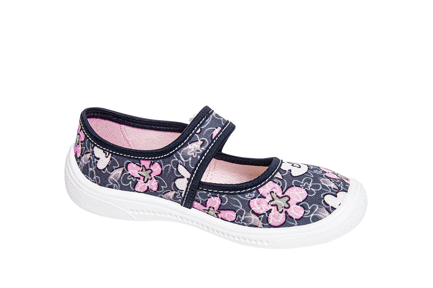 Obuwie tekstylne dla dzieci – praktyczne, idealne na spacery, do szkoły i do chodzenia w domu. Wykonane z naturalnej bawełny. Pięta usztywniona termoplastycznym zapiętkiem zapewnia stabilność i bezpieczeństwo podczas chodzenia. Spody obuwnicze są produkowane z lekkiego, odpornego na uszkodzenia i ścieranie tworzywa PVC. Spody są antypoślizgowe.